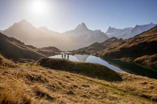 Die Jungfrau hat er gemalt, die Schynige Platte hat er gemalt, aber den Bachalpsee hat Ferdinand Hodler nie auf Leinwand gebannt. Dabei wäre das glasklare Wasser, in dem sich bei Windstille das Schreckhorn spiegelt, ganz nach dem Geschmack des weltbekannten Symbolisten gewesen. Dafür hat manch anderer die Schönheit des «blauen Juwels» entdeckt. Der Bachalpsee reist als Postkarte um die Welt. Dennoch: Kein Foto vermag die Ausstrahlung des Bergsees zu fassen. Dafür muss man hin und sich selbst ein Bild machen. Anstrengend ist das nicht. Von First aus ist der Bachalpsee zu Fuss in weniger als einer Stunde auf einem einfachen, familienfreundlichen Wanderweg erreichbar.