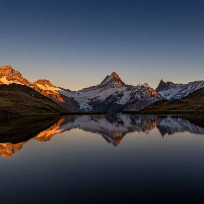 Der Bachalpsee ist ein idyllischer Bergsee im Berner Oberland, der mit seiner traumhaften Spiegelung der Alpen und seiner ruhigen Lage auf 2'265 Metern Höhe Besucher verzaubert.
